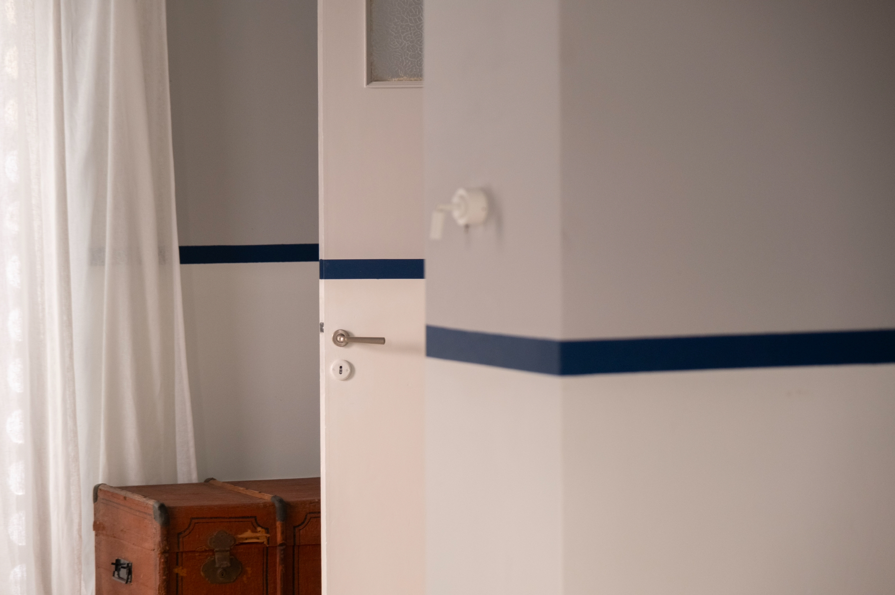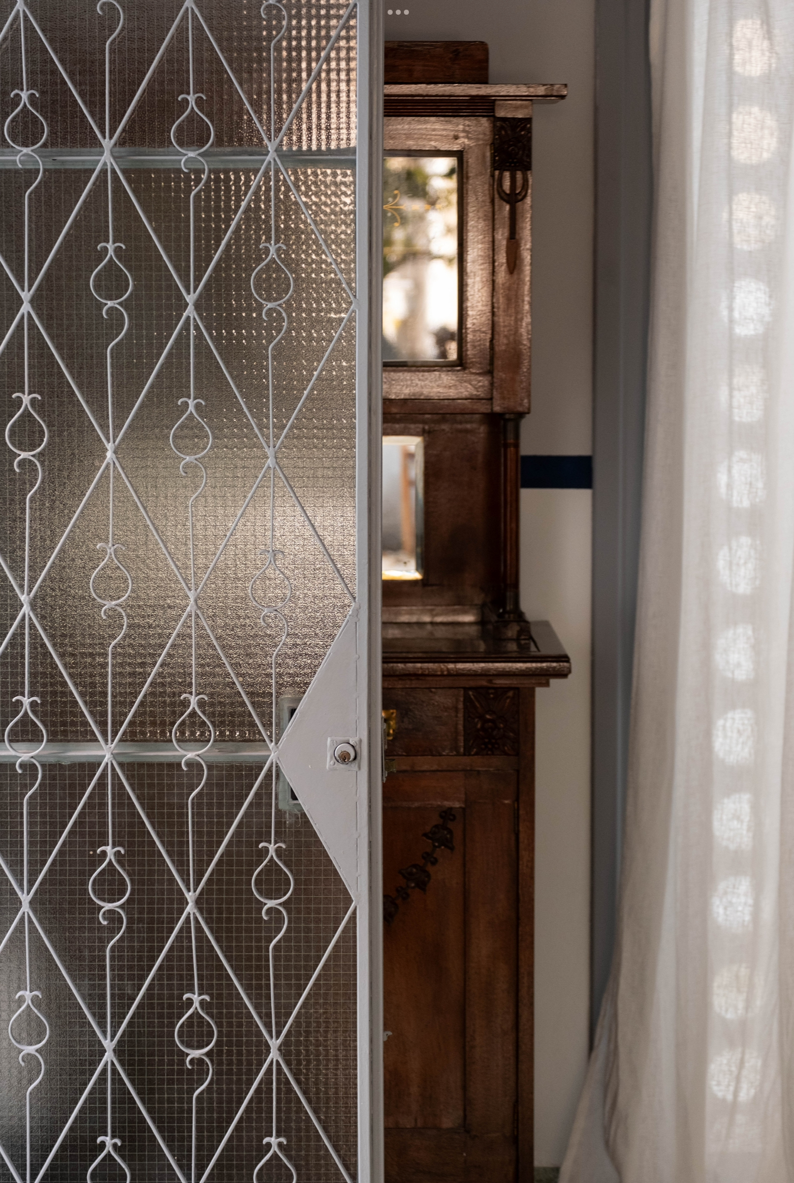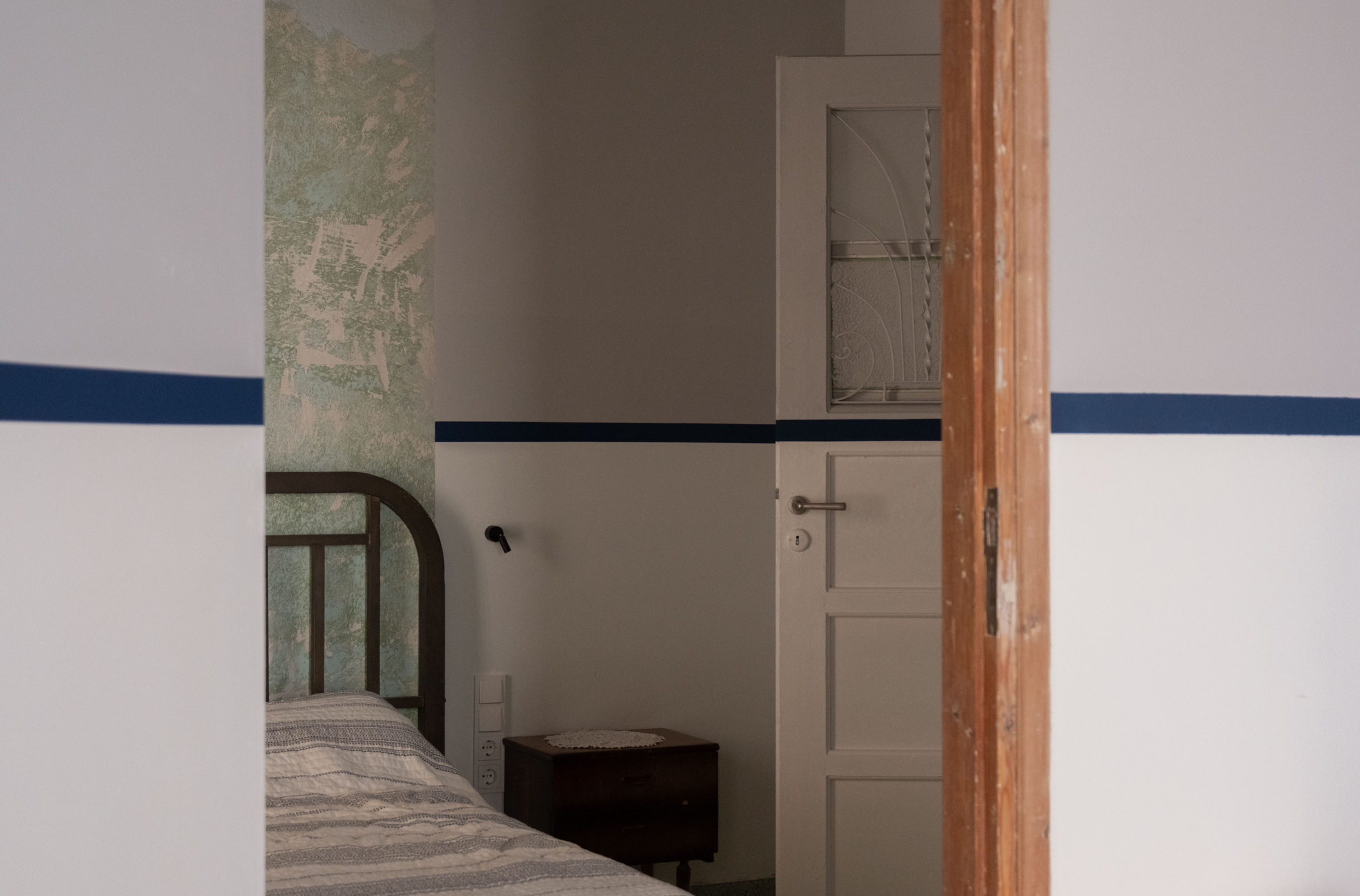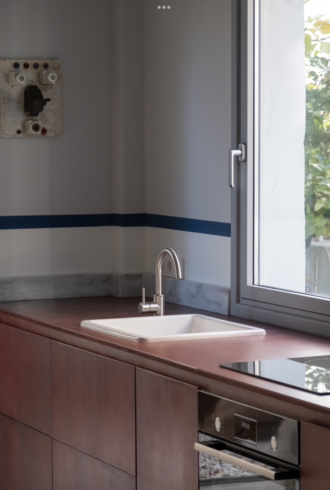 We preserved the load-bearing structures and authentic details: the original window grilles, period stained-glass windows, marble sinks, mosaic floors, and the old fig tree in the garden.